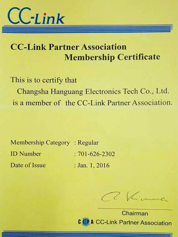 晗光公司成為CC-Link(控制與通信網絡)協會成員