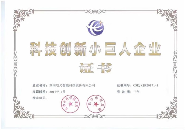 晗光智能榮獲“科技創新小巨人企業”稱號